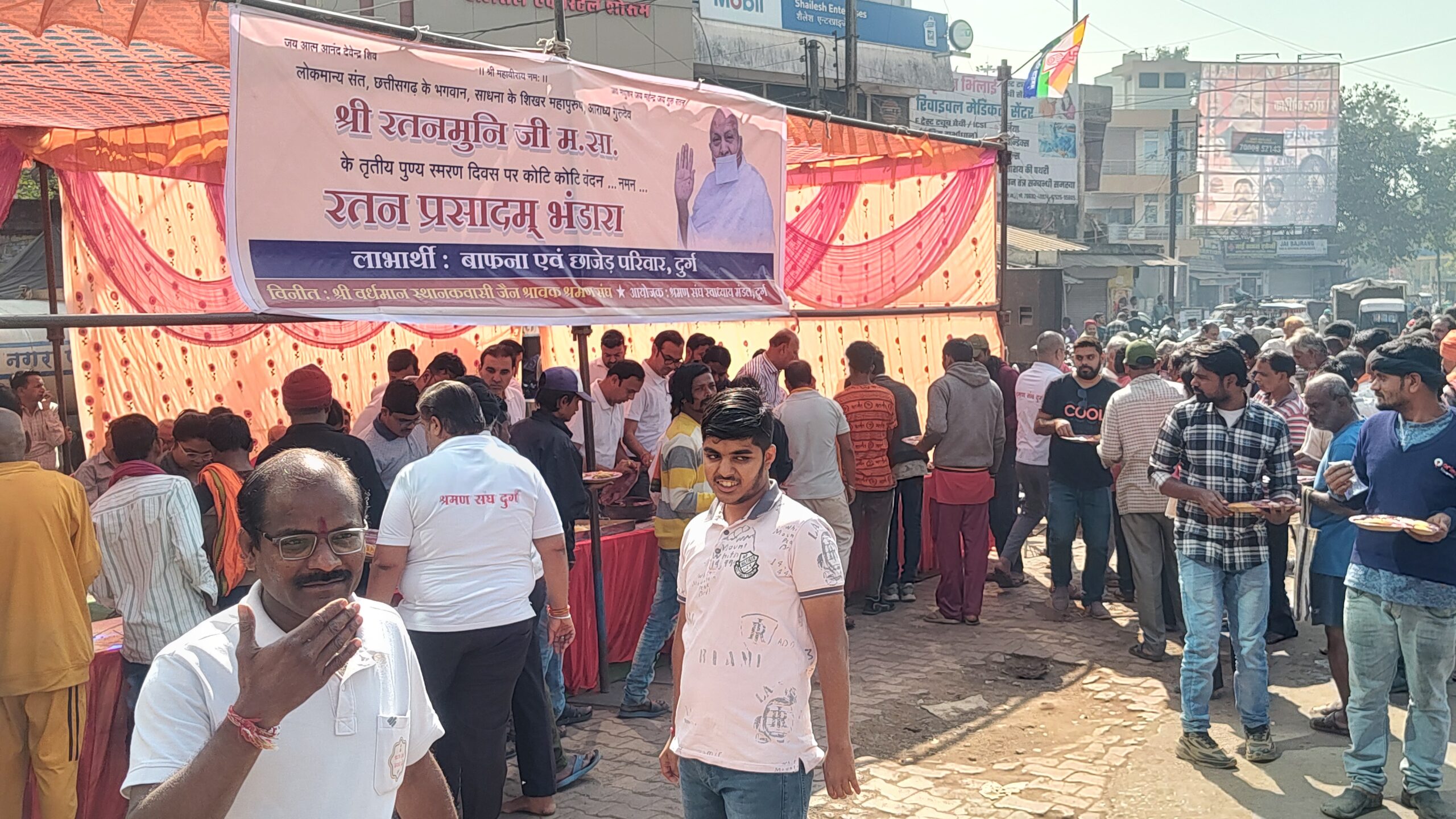 लोक मान्य संत श्री रतन मुनि जी महाराज का तृतीय पुण्य स्मृति दिवस के प्रथम दिवस विशाल भंडारे का आयोजन पांच हजार से अधिक लोगों ने भंडारे में भोजन प्रसादी ग्रहण किया